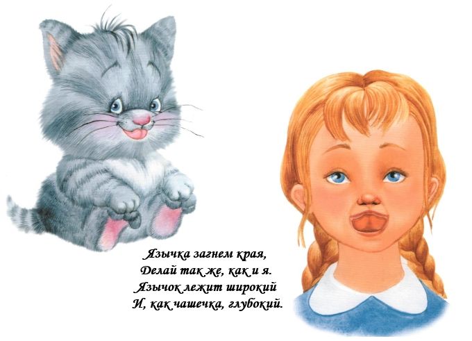 Нужно представить, как будто производится облизывание тарелки. Язык в трубочку сворачивать не нужно. Язык должен быть расслабленным.