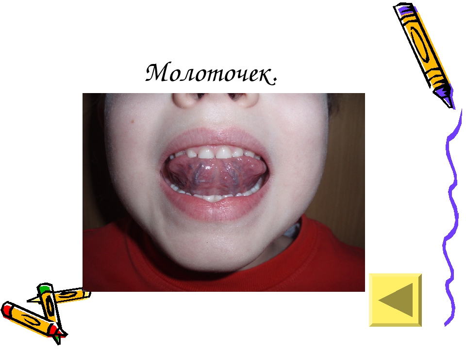 Достаточно улыбнуться и стучать кончиком языка по основанию зубов, но в передней поверхности. Делать это нужно сильно и отрывисто, как будто хочется забить гвоздь.
