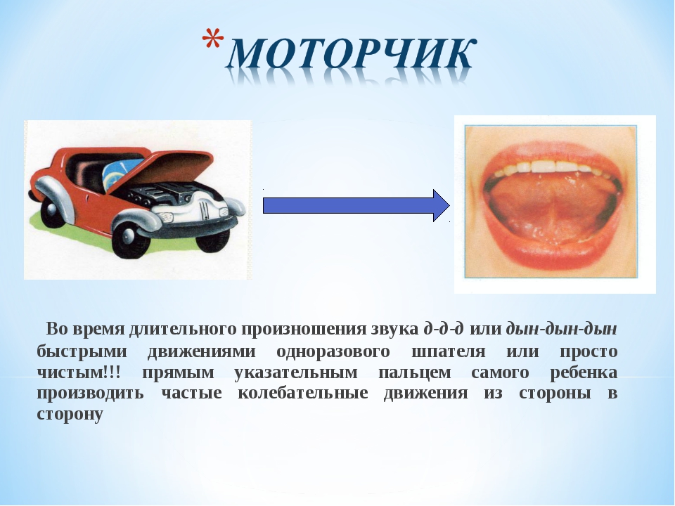 Положить на язык указательный палец или ватную палочку, а потом быстро водить ей вперед-назад. Лучше всего упражнение работает в сочетании с «Комариком».