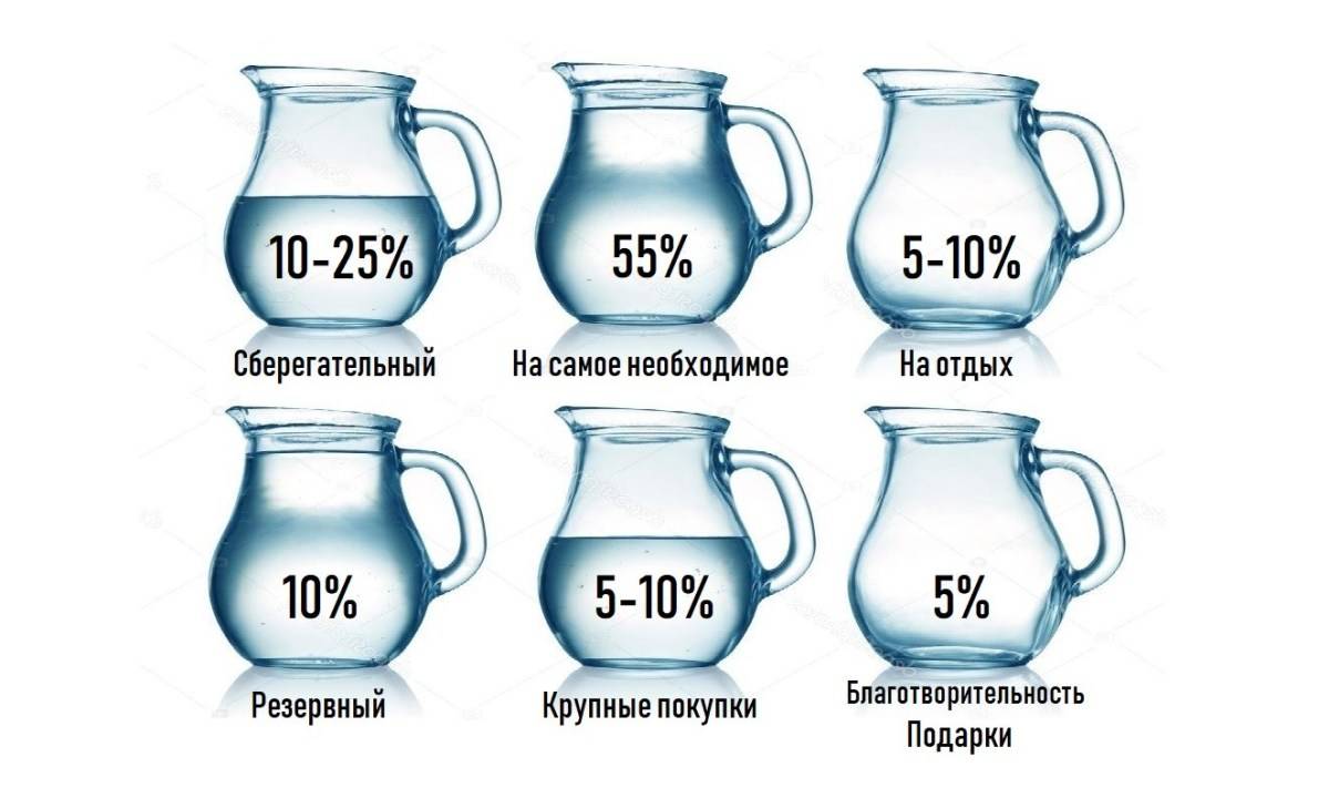 Метод шести кувшинов базируется на делении доходов на 6 частей:
