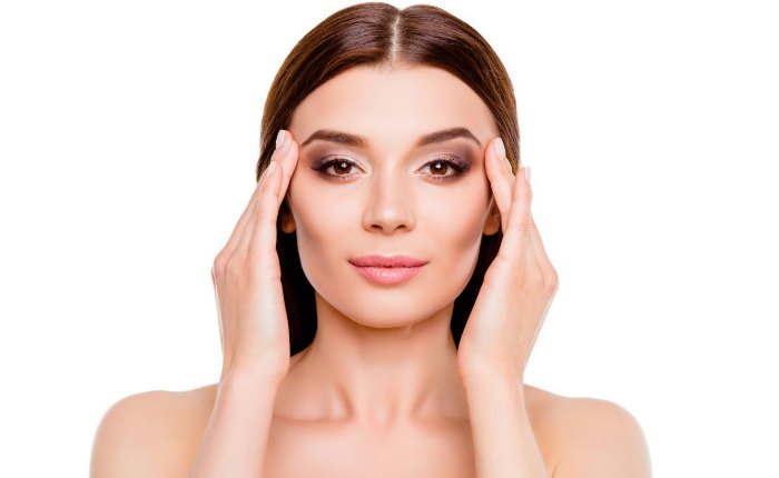 Согнув пальцы костяшками простучите территорию от надбровной части вверх к волосам. От лба к вискам. Повторите такое упражнение круговыми движениями 3-4 раза.