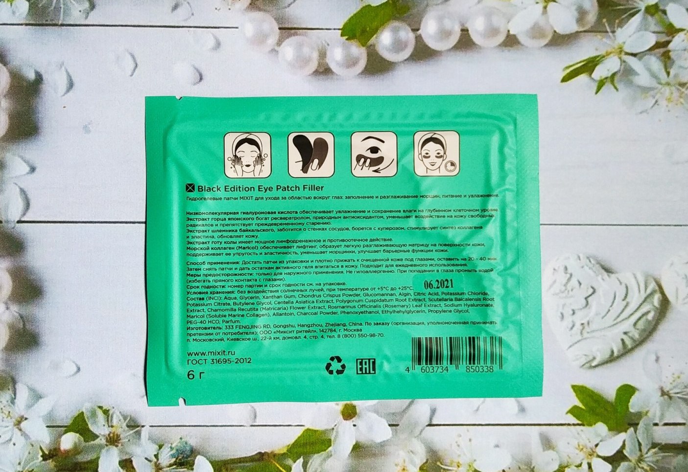 Благодаря составу, пропитавающему наклейки, кожа в периорбитальной зоне увлажняется, разглаживается и осветляется.