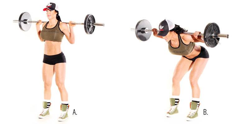 - Наклоны вперед со штангой на плечах «good morning»